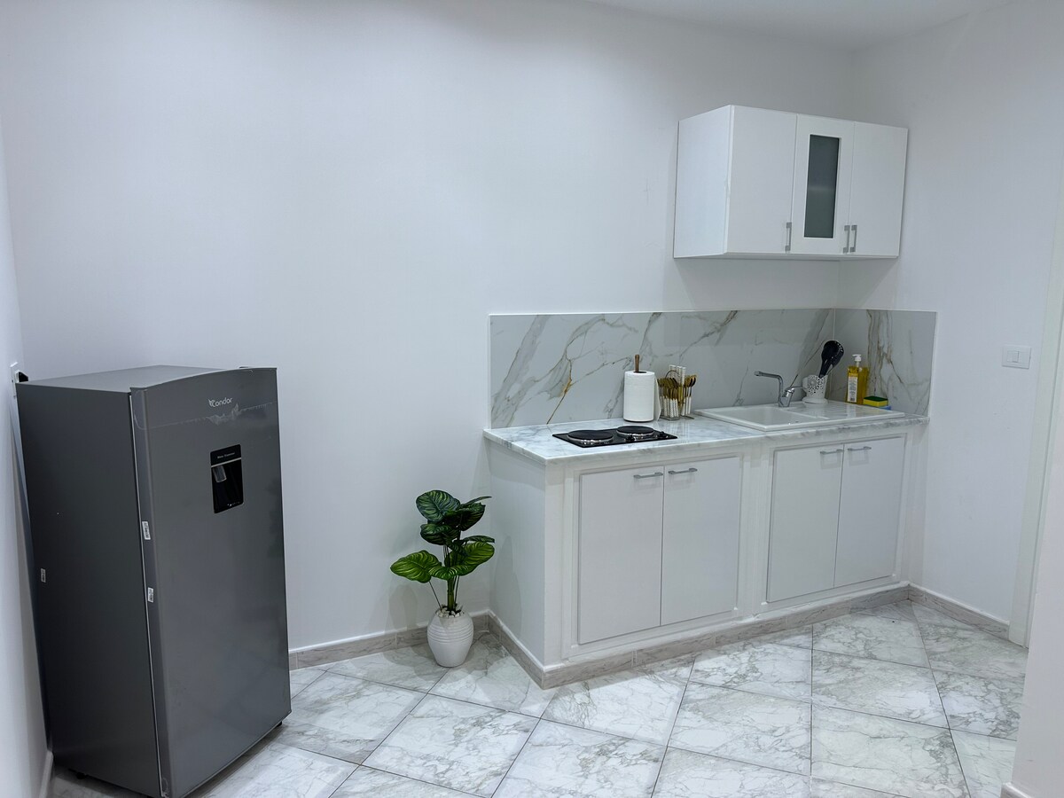 Kick back and relax in this calm, and elegant Scandinavian-style apartment with a spacious bedroom, an alternative and bright living room, a well-equipped kitchen and a clean bathroom. Surrounded by all amenities, this cozy apartment is located at the main entrance to city of Sousse leading to the south to give you direct access to your trips to the magnificent Tunisian desert, with new furniture at your disposal as well as all the necessary equipment to give you a dream stay.