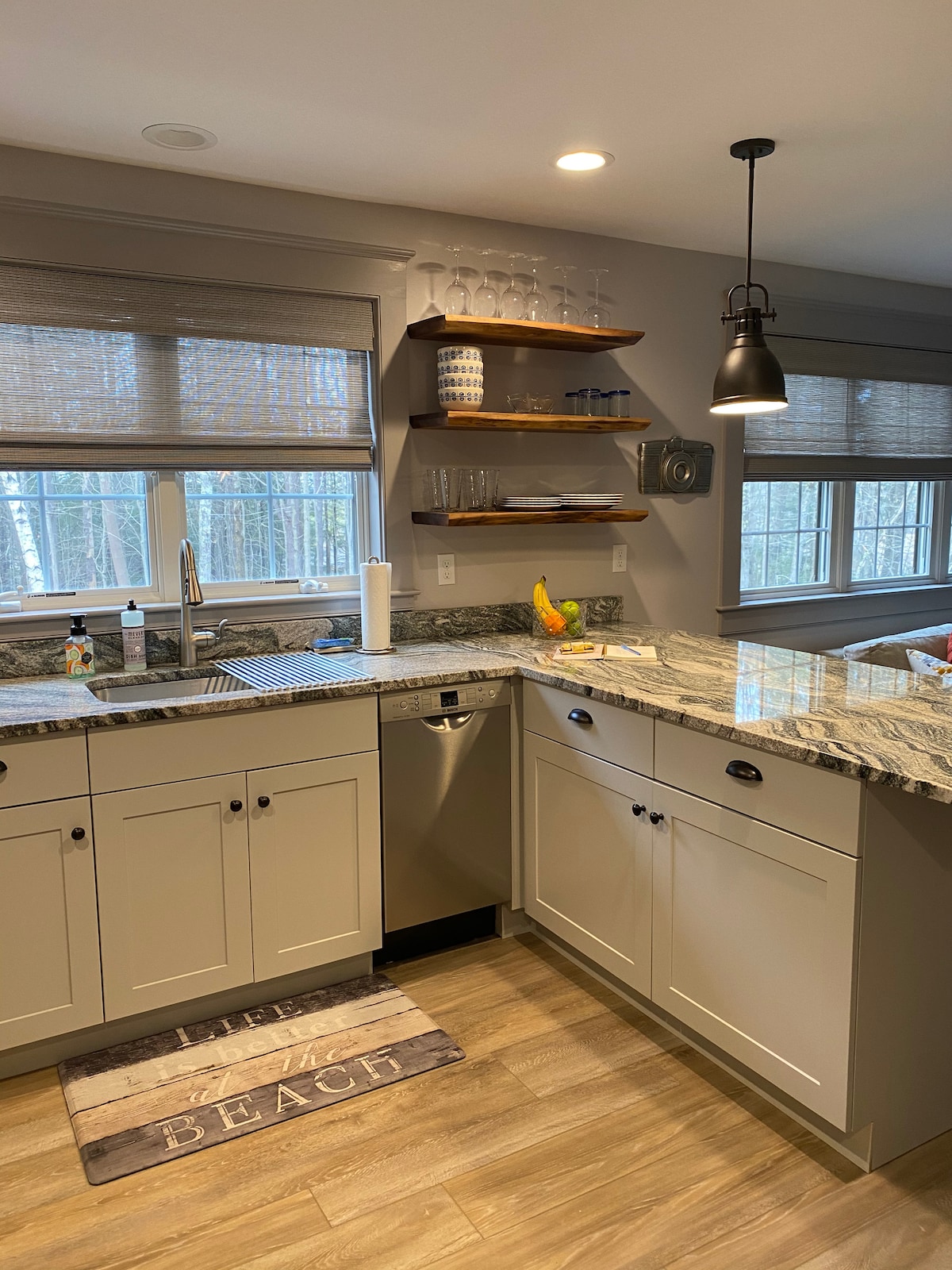 A nautical look and feel is what this coastal home away from home offers. A detached from the main house in-law apartment is the perfect get away. Located directly on the water, on an estuary called Spinney Creek, part of the Piscataqua River. Bring your kayak, fishing rod, or sit back enjoy a cold beverage and watch the sunsets by the fire pit. Best water views ever. It is 1.5 miles to downtown Portsmouth, NH and less then 1 mile to the beautiful rejuvenated downtown Kittery.