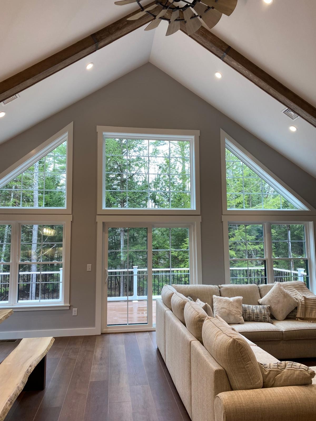 Both rustic and elegant, the Birch Ledge Guest House offers a cozy place to relax and recharge, whatever the season. The first floor features a spacious living room (with queen sized pull-out-couch), dining area, and small kitchen. The bathroom has a walk-in shower. The second floor is a loft accessible by a spiral staircase and has a comfy queen and two twin sized beds. The guesthouse is surrounded by quiet forest and is an easy 30 minute drive to Portland.