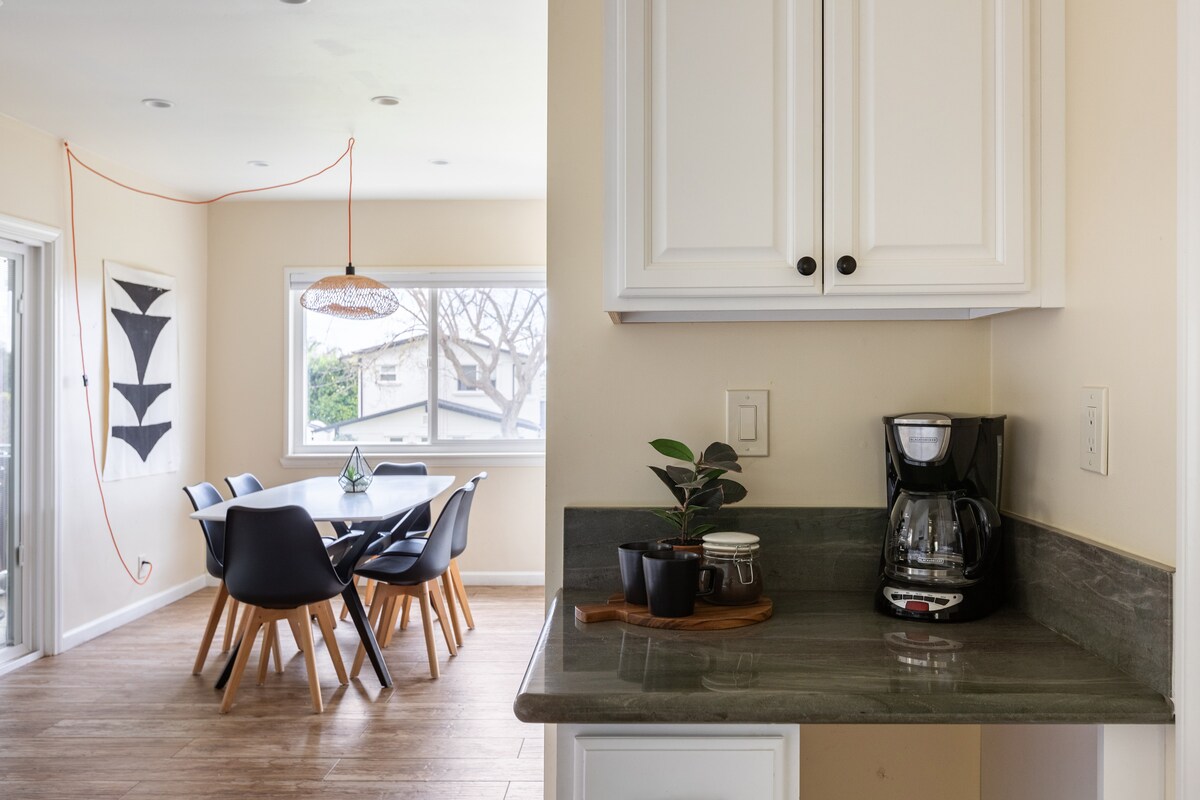 Step into the spacious and fun 2BR 2BA family oasis in the scenic coastal town of Encinitas. It promises a relaxing retreat just a few minutes from pristine beaches, a vibrant downtown area, excellent restaurants, attractions, and natural landmarks. The stylish design and a rich amenity list will leave you mesmerized. ✔ 3 Comfy BRs ✔ Open Design Living ✔ Full Kitchen ✔ Backyard (HD Projector Screen, Fire Pit, BBQ, Dining) ✔ Workspace ✔ Smart TV ✔ Wi-Fi ✔ Laundry ✔ Parking See more below!
