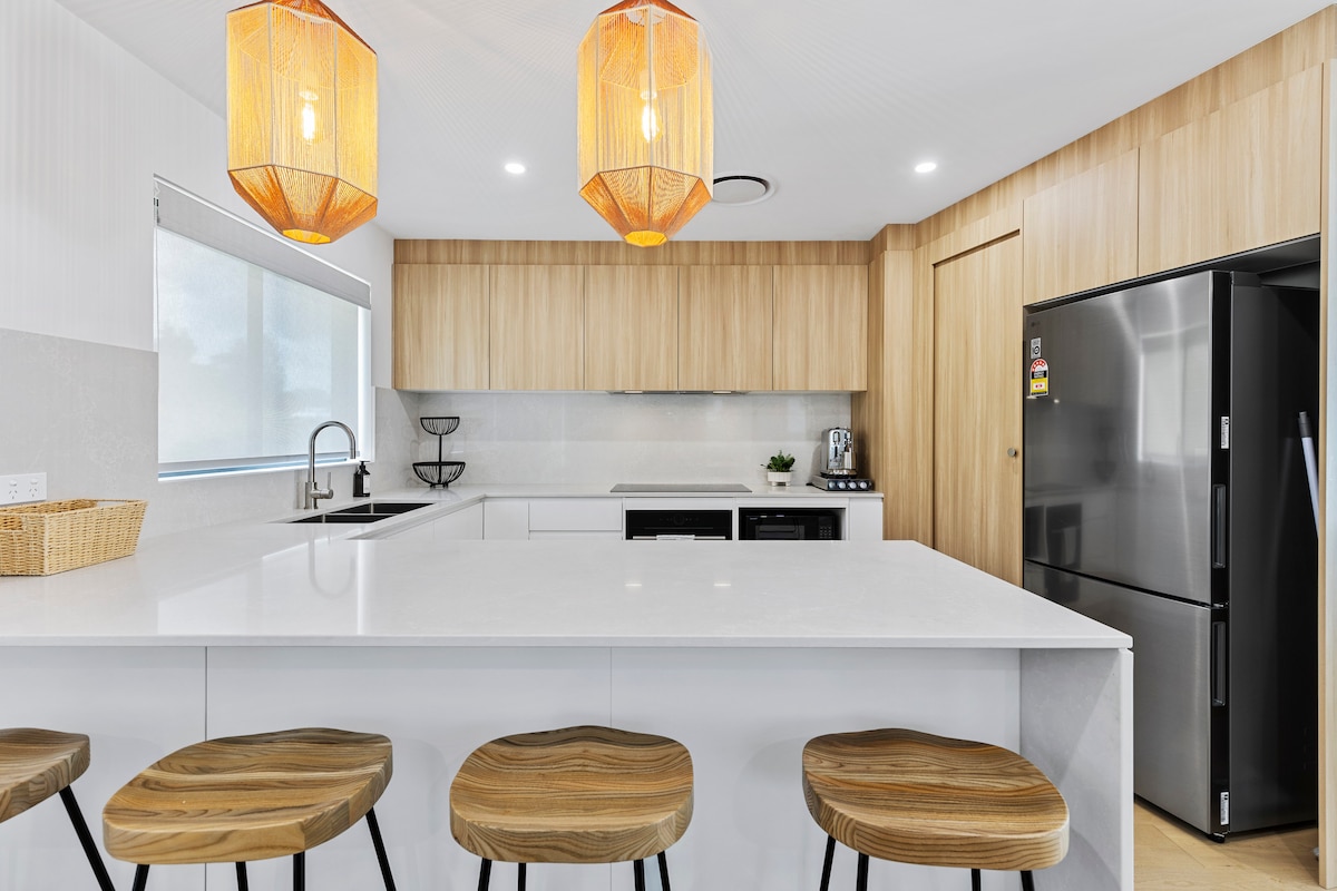 Welcome to Burrill Bungalow — a couples retreat for those who love relaxed coastal living. Privately tucked behind our home and surrounded by tropical palms, this freestanding studio features an open-plan layout with bifold doors that open to the garden for effortless indoor–outdoor living. Enjoy a king bed with beautiful linen, a spacious bathroom, and an outdoor bath set amongst the garden — perfect for stargazing. A private patio is ideal for yoga or quiet relaxation.