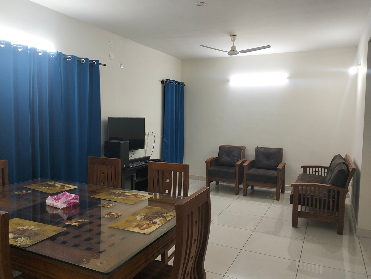 Escape to a peaceful 2-bedroom apartment retreat in a beautiful gated community on the outskirts of Bangalore. Overlooking serene farmland, this cozy apartment is just 15 minutes from the international airport and close to Nandi Hills, concert venues, vineyards, and Isha Ashram. 🌿 Optional amenities like a pool are available within the community (additional cost paid directly to the clubhouse). Perfect for: Couples Families Business travel Weekend getaways Convenient stopover near airport✈️