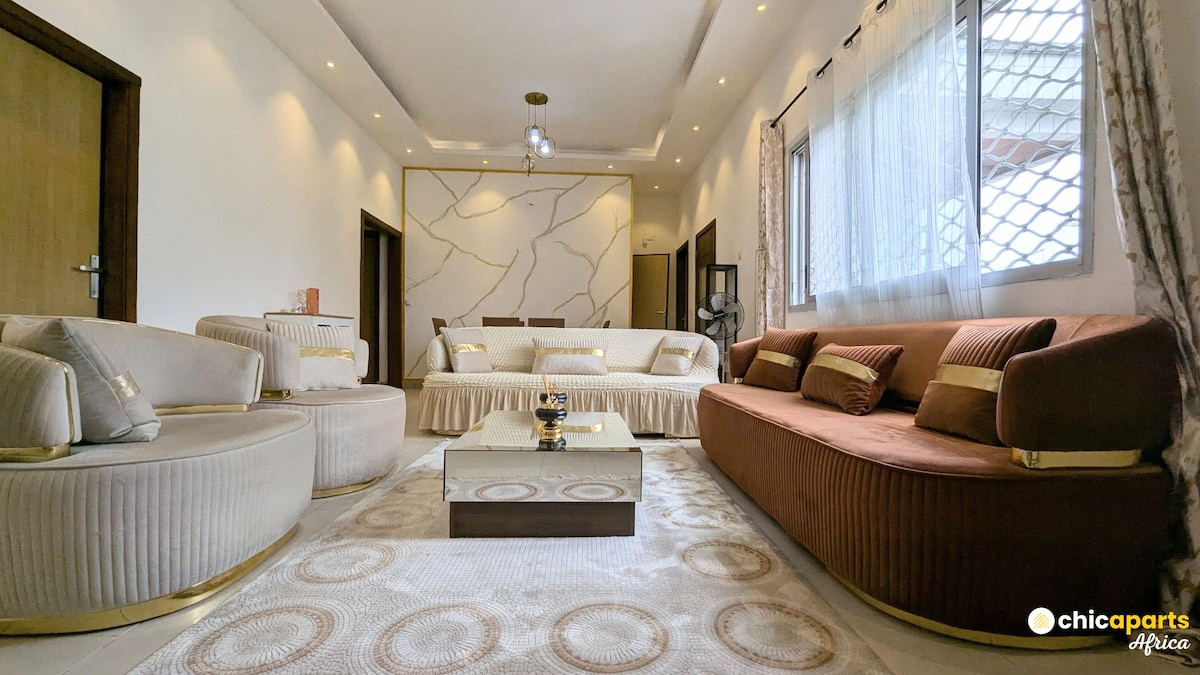 Relax and enjoy Douala in this quiet, elegant apartment: - Warm and elegant living room - Orthopedic mattress - Unlimited WiFi connection - Netflix and local channels - Hot water in all rooms - Fully equipped modern kitchen - 5 minutes from banks and supermarkets - Free on-site parking - 7/24 security guard - Maid service available - Air conditioning available throughout the house - Garden balcony with swing and city view - Prepaid meter for electricity