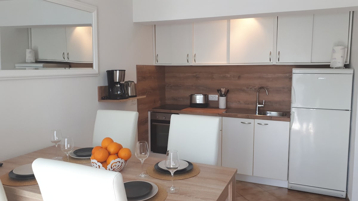 Comfy and a bright space with a two balconies with a beautiful view. One balcony is oriented to the city port and other one to the sea and island Brac. The apartment is placed in the quiet part of Jelsa, but really close to the city centre. Big sand beach is just 5 minutes walk from the apartment. You can also swim literally in the front of the apartment, on the small dock. Market is 5 minutes walk, same as the main square.