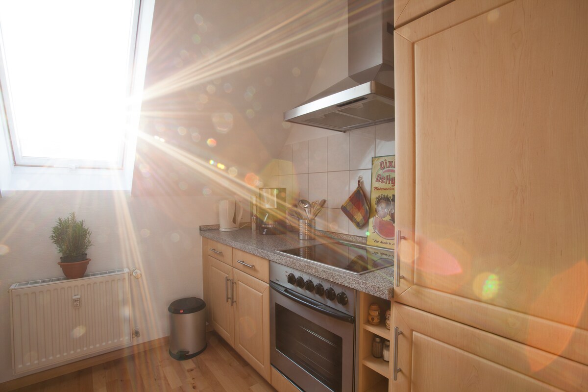 The apartment is on the cultivation of a single-family house with separate Eingang.Lichtdurchflutete, modern, open space with Studiocharakter.Wohnraum with comfortable couch, chair and Sideboard.Offene American style fitted kitchen with everything dazugehört.Esstisch with four chairs. Double bed with a 1.60 mx 2.00 m. Extra bed for 3rd person. Bathrooms with heated floors and walk-in shower.