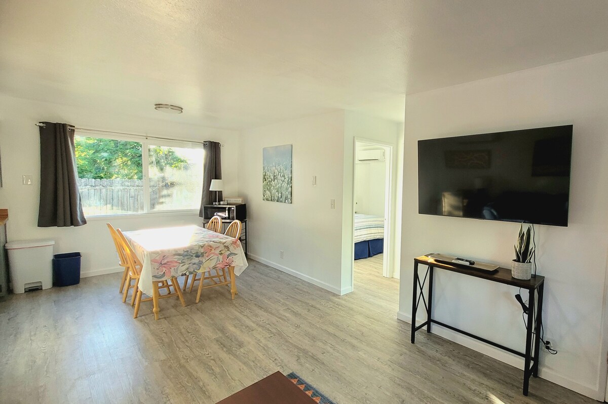 This modern little home is the perfect setting to enjoy some quiet time or explore the quaint town of Springfield, Oregon. This house offers a queen sized bed and brand new queen memory foam sofa bed comfortably sleeping 4. Smart TV gives easy access to all popular streaming programs. Private, well lit off street parking spot in front of unit. Less than 3 miles from Autzen Stadium, Sacred Heart Medical Center at Riverbend, Historic downtown Springfield, restaurants, bike paths, and more.