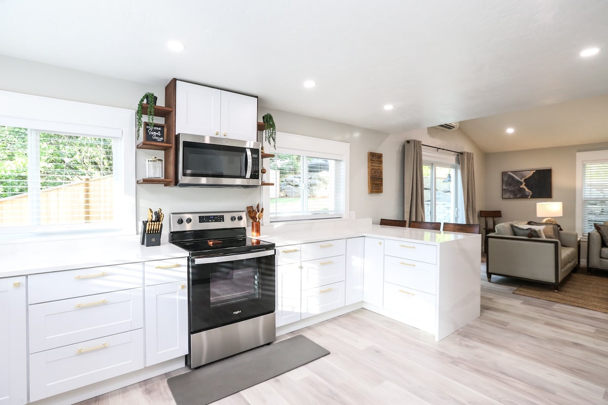 Welcome to your upscale Eugene retreat near the University of Oregon, Autzen Stadium, river paths, and parks. This beautifully remodeled home features high-end finishes, a stylish and comfortable layout, and inviting indoor and outdoor living spaces. Steps from Centennial Plaza with restaurants, bakeries, a gym, and more, plus easy access to transportation. Perfect for game days, getaways, or extended stays.
