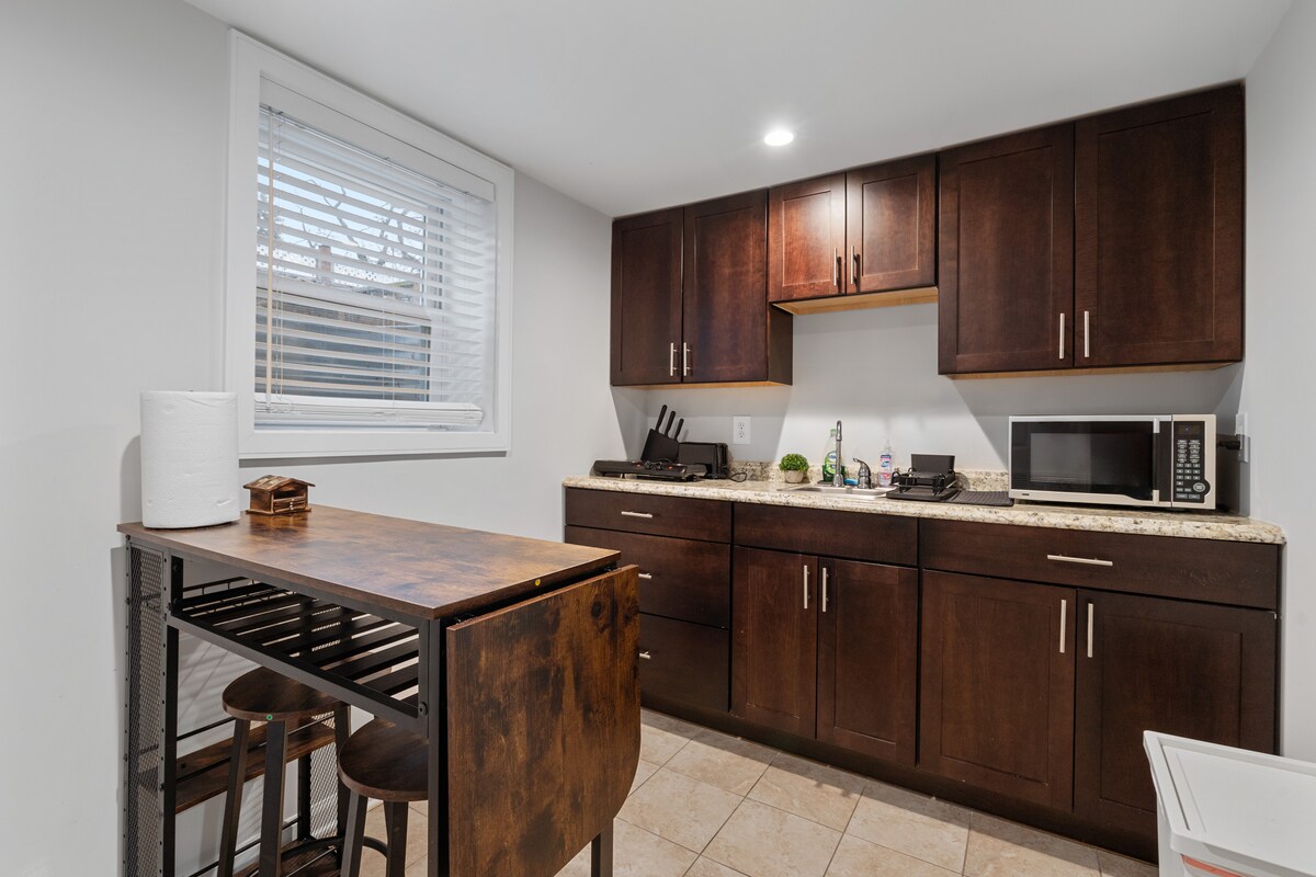 Welcome to this spacious, bright, studio at a lower level in a split house. Our step-free private entrance is accessible with brick paving from the driveway. Brightly painted walls create a calm atmosphere and a sense of peacefulness. The Kitchenette will give you the essentials to warm up your food using the microwave and to have a quick bite. The place is located in a beautiful neighborhood of Kingstown, VA, minutes from the train station with convenient access to Washington, DC.