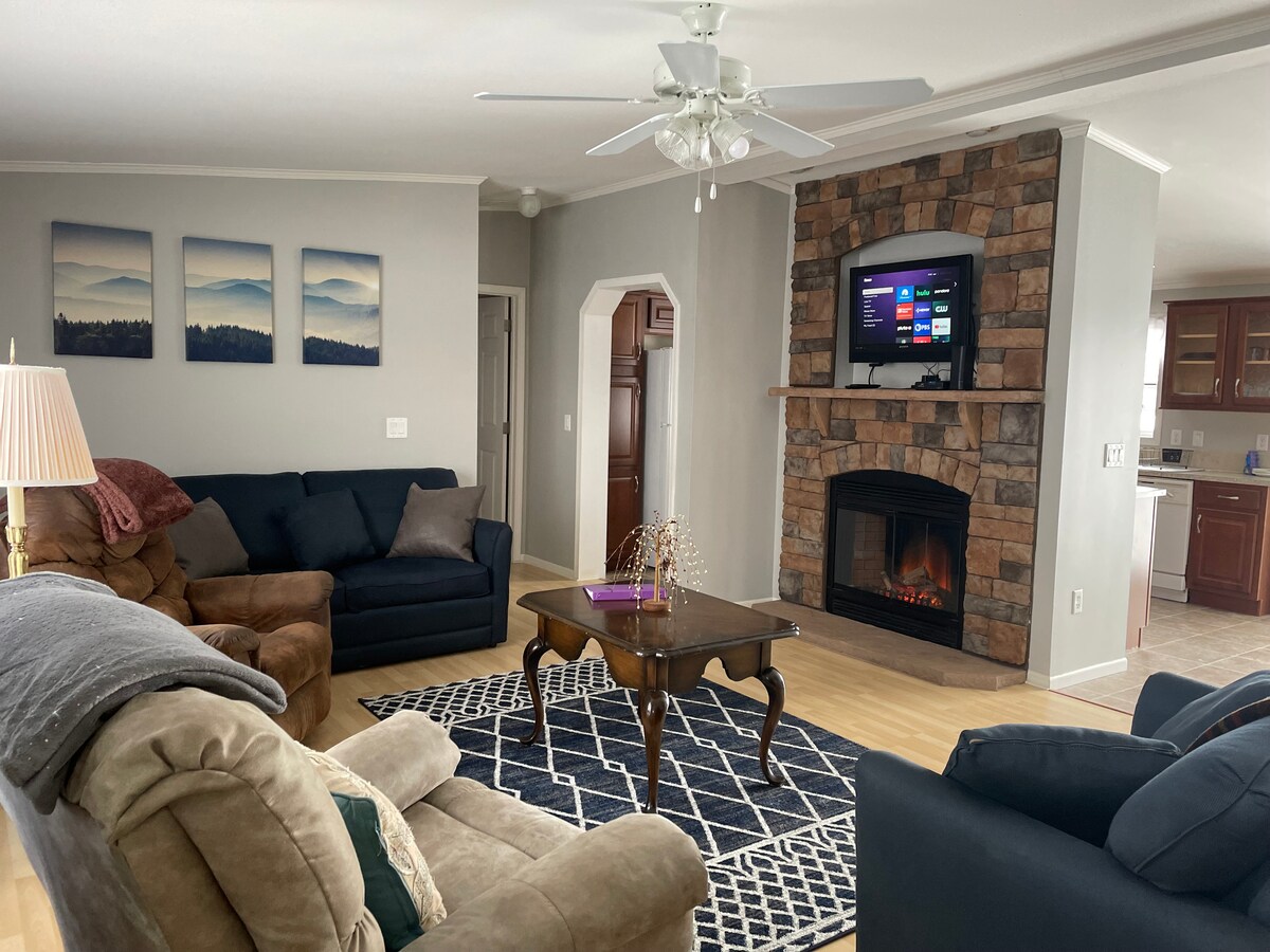 Bring the whole family to this great place with lots of room for fun. This property is located on a 350-acre family owned and operated farm that you are welcome to explore and enjoy the beautiful scenery in your own private, spacious getaway!
