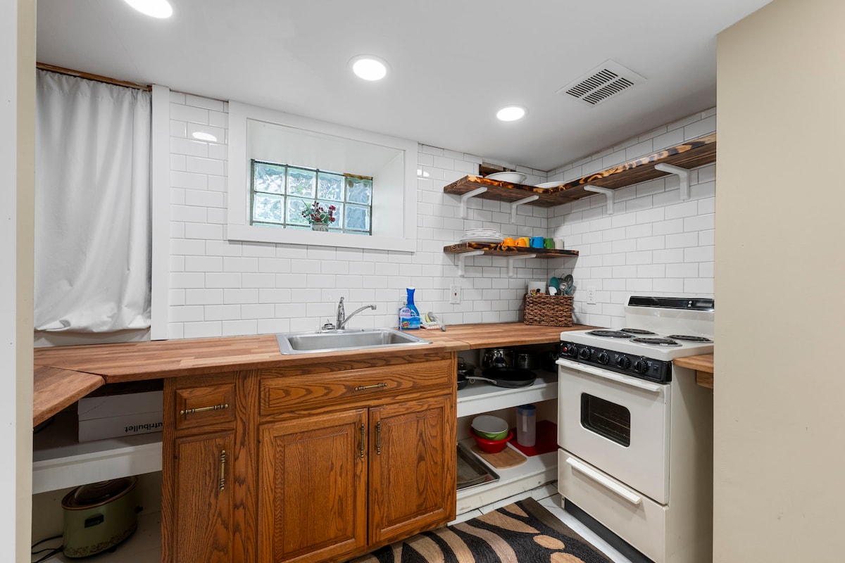 The Shaw Fox's Den is a cozy, unique, and fun basement space (w/ it's own private entry) that offers everything you'll need for a comfortable short term stay, while also adding all of the amenities and charm that would make you not want to ever leave (especially if you like foxes!). Uniquely decor'd & accented with rustic wood furniture, lots of green shrubbery, and of course the fur-babies of the woods! This space truly has everything you would expect in a luxurious "human" FOX DEN! ;-)