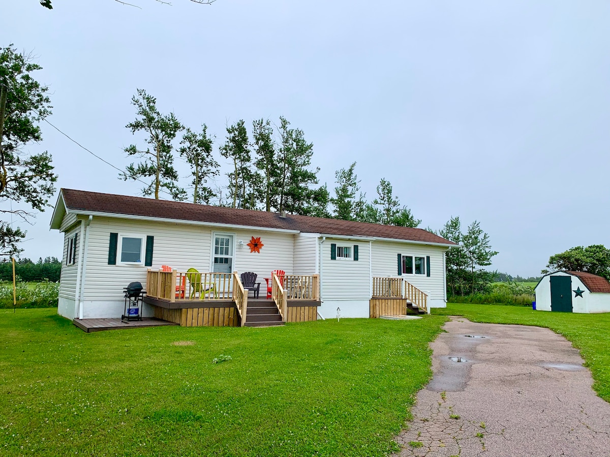 Westerly cabin, is a touch of the west among the cottages on PEI’s north shore. A short walk to the ocean, Lakeside Beach is adjacent to Crowbush Golf Resort, near Confederation Trail and central to Greenwich Park, Savage Harbour and St. Peter’s Bay. We’re at the end of the lane with a field behind making it a great retreat for 2, or up to 4, even your dog child. Dogs with leash are welcome at Lakeside Beach. Our hope is to offer a welcoming inclusive space while you enjoy the island.