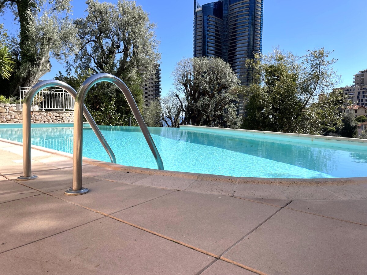 Cozy studio, pool and sea view • close to Monaco