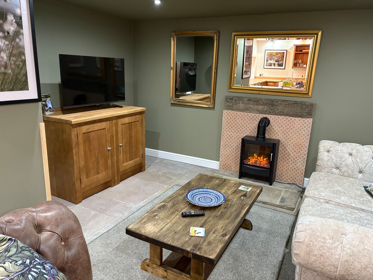 Romantic Luxury escape including; Secret Spa with exclusive Hot tub loved by all our guests New 2023 Copper bath & Copper themed walk in shower New 2023 SMEG themed interior designed kitchen Log burner and outdoor fire pit Hypnos bed ,crisp white linen ,fluffy towels ,panoramic views with incredible walks and waterfalls nearby Your stay includes spa towels and spa robes. One well behaved medium sized doggy welcome Not suitable for infants