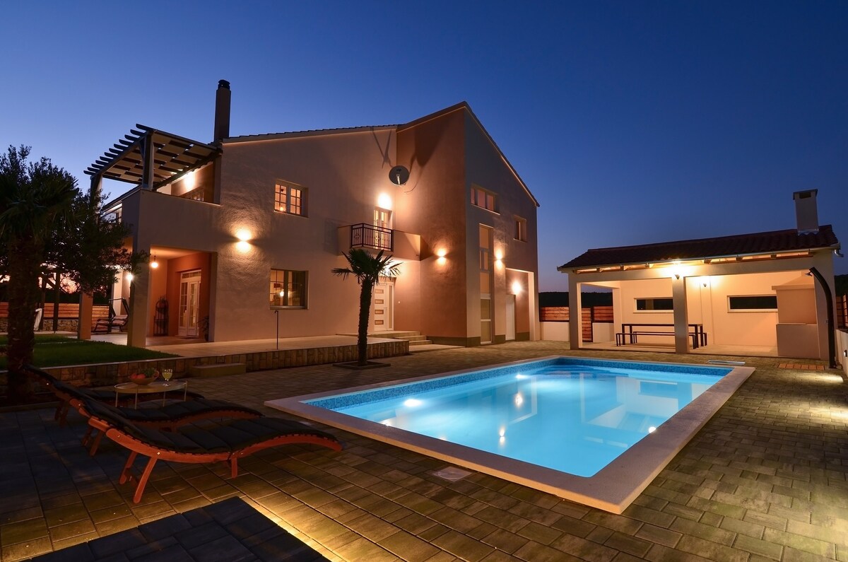 This beautiful villa is newly built. It is located in the small village of Banjevci, peaceful environment, which will allow you to relax and enjoy your privacy. It is not far from the Vrana Lake Nature Park, where the most attractive viewpoint of this area is located - Kamenjak. Here you can enjoy all the beauty of the view of the largest natural lake in Croatia, the olive groves and dry walls of Modrava, and the blue sea dotted with the islands of the Zadar, Šibenik and Kornati archipelagos.
