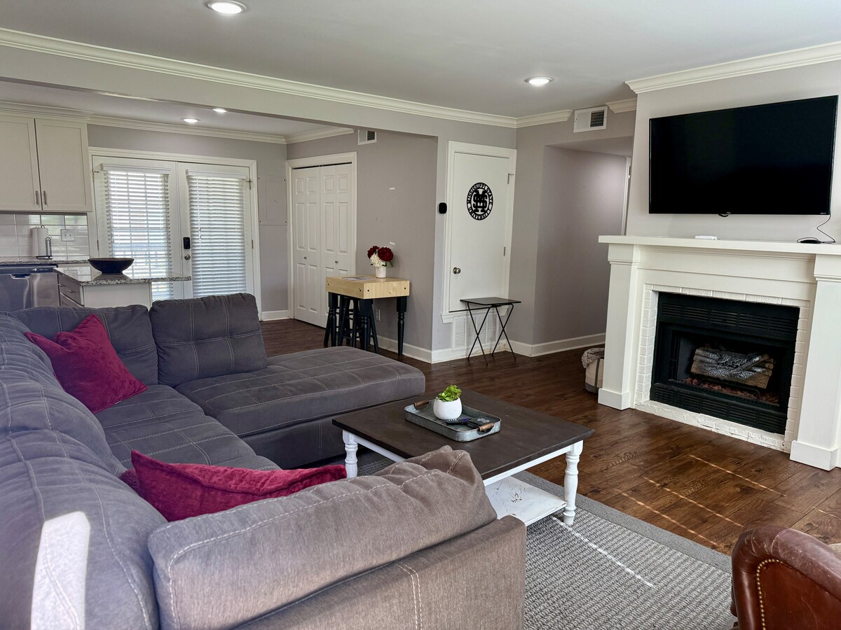 Renovated, 2 BR, 2.5 Bath Condo! Perfect for ballgames, save yourself the parking hassles and take the 15 minute walk to Dudy Noble, Davis Wade or the Hump! Or you can drive in 3 minutes! Each BR has a Queen bed and attached bathroom. There is a Queen size Ikea fold over couch in the living room for additional guests. We have designed and decorated like our own home and know you will feel at home here too! (Pets and smoking are not permitted). Home game weekends require a Fri and Sat stay.