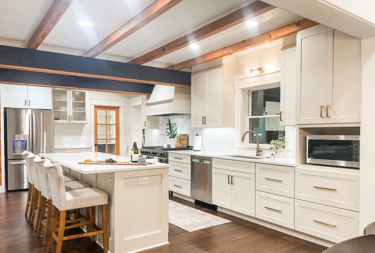 Your family will be close to everything when you stay at our centrally-located home. Step back in time in this vintage charmer with two queen beds and plenty of amenities. Each room is a collection of thrifted finds and unique, colorful design. Luxury mattresses, linens and pillows will ensure a great night’s sleep.