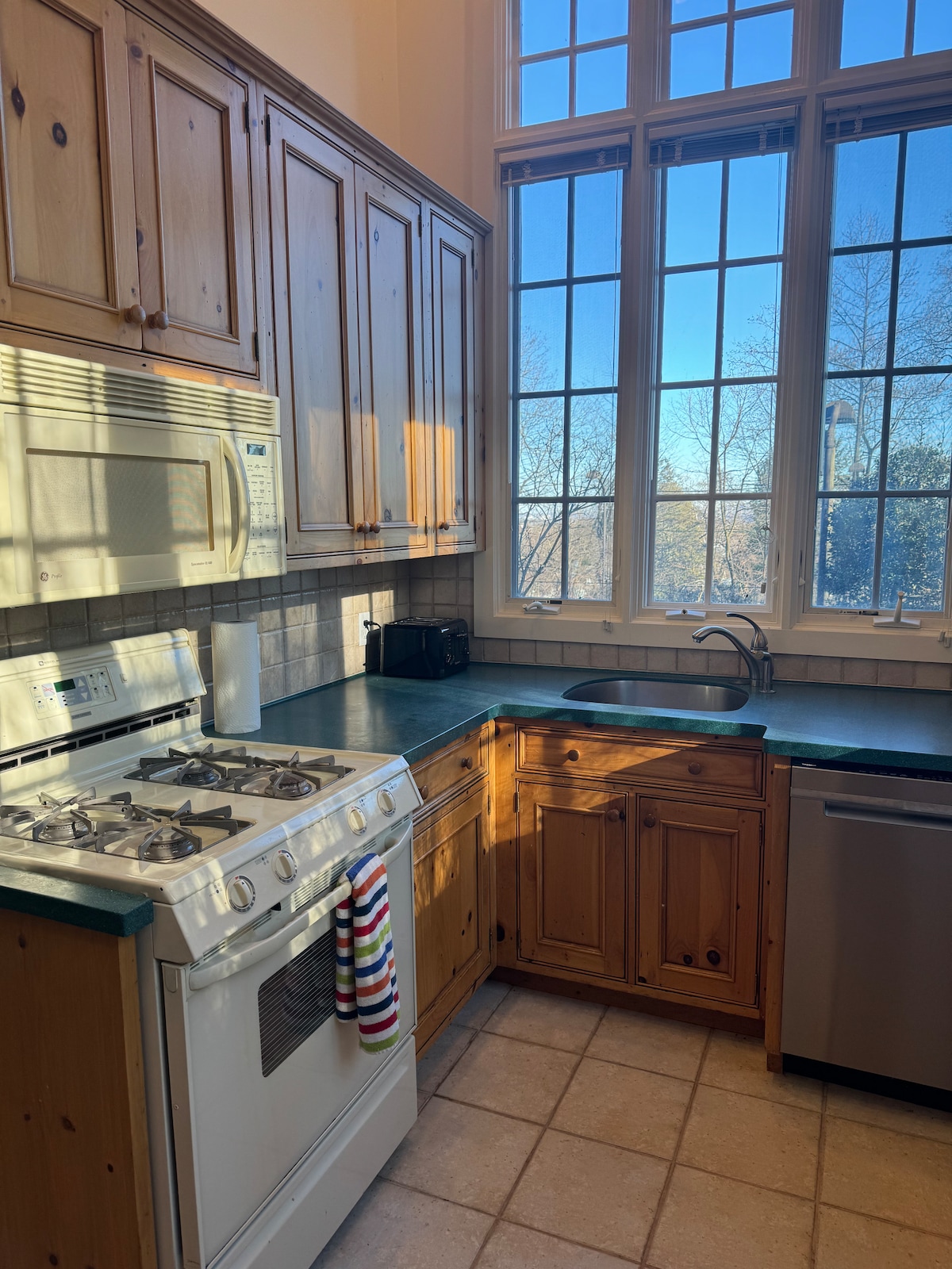 Terrific space with loads of light and openness. Overlooking golf course, hayloft converted into king bed with twin bunks in office nook and 1.5 baths. It's the perfect place to get away from it all. Barn converted into residence. Comfy, quiet and serene. First level has living room, dining room and a half bath with a spiral to the hayloft which is open to below and divided by closets that create the office nook but permit light over them. The barn is open, only the bathrooms have doors.