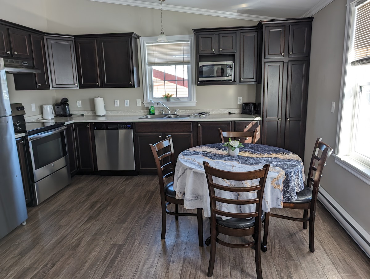 Forget your worries in this spacious and serene space. Catch the sunset at this fully equipped 2 Bedroom modern and cozy Biscuit Box style home with an Oceanview. Close to downtown Corner Brook where you can walk within 20 mins to local Craft Brewery's and amazing dining. A large, fully equipped kitchen and a Washer and Dryer for your use. As with any traditional Biscuit Box the bedrooms are upstairs. In winter studded tires are needed.