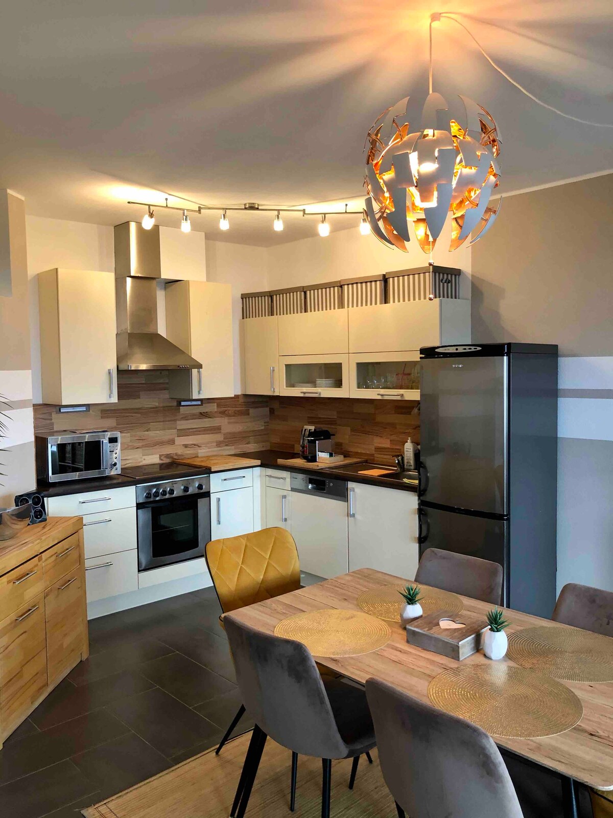 The apartment has recently been completely renovated, has a state-of-the-art interior and consists of an open space of 65 M2, which creates a very open and free feeling. The unique view over Lake Wolfgang can be enjoyed to the fullest. The luxurious bathroom including a huge bathtub, in combination with the ambient lighting, ensures ultimate relaxation. A box spring bed, a modern kitchen and a comfortable sofa ensure a perfect holiday feeling.