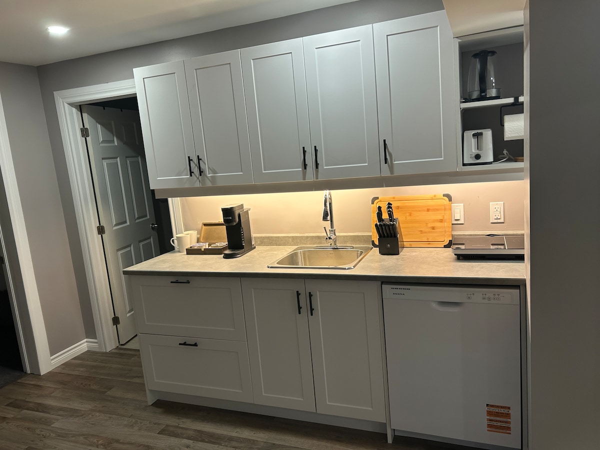 Escape the noise and unwind in a peaceful private suite on a country property along the Moira River in Tweed, Ontario. Set on 3.2 acres of riverside land, this cozy guest suite is a quiet place to slow down, explore nature, and enjoy rural Ontario. Wake up to birds, watch the river drift by, and relax under the stars. The suite is in the lower level of my home with a private entrance so guests can come and go freely. Inside you’ll find a comfortable space to relax after exploring the area.
