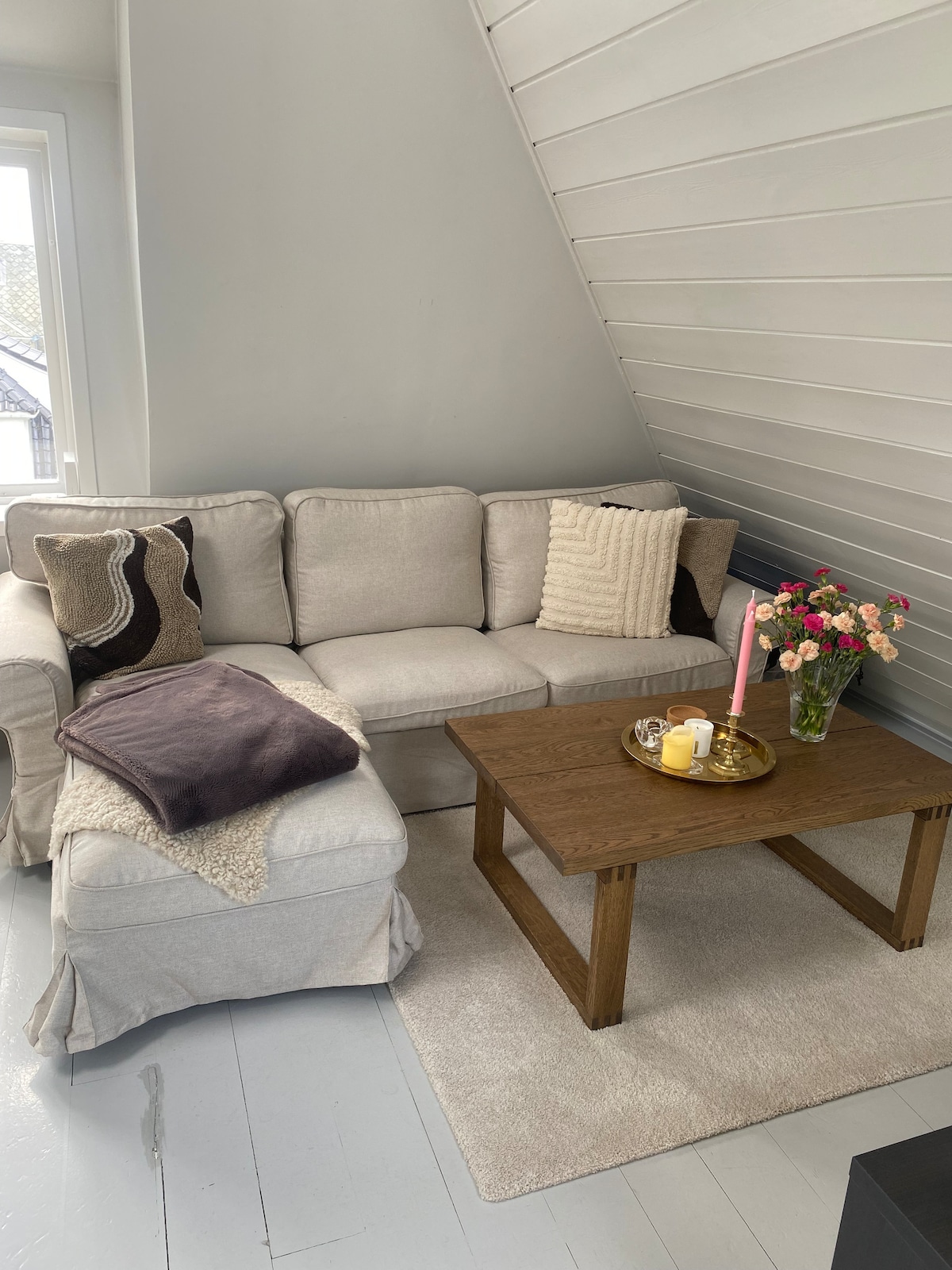 I am now renting out my dear home to those who want to stay close to the city center, but in quiet and pleasant surroundings when visiting Stavanger. It is a very cozy loft apartment (if I may say so myself) with a sunny terrace. The bedroom consists of a 120 cm bed.