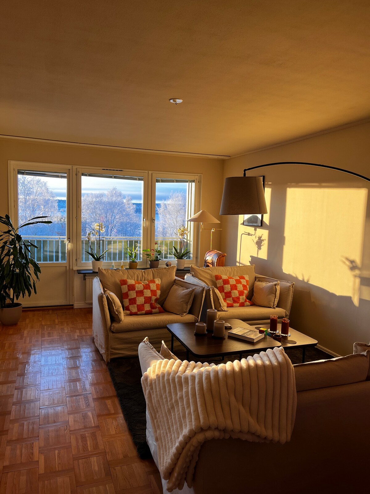 Lägenhet med fantastisk utsikt över sjön och centrala Östersund. Lägenheten är smakfullt inredd i skandinavisk stil med ljusa färger. Här finns stora fönster med sittplatser där man kan vila blicken över Storsjön, se solnedgången eller spana över Östersunds stadsvy. Lägenheten har alla bekvämligheter du behöver. Från lägenheten är det nära till sjön och skogen med fina promenadstigar. Du tar dig centrala Östersund bäst med bil, det ca 10 minuter.