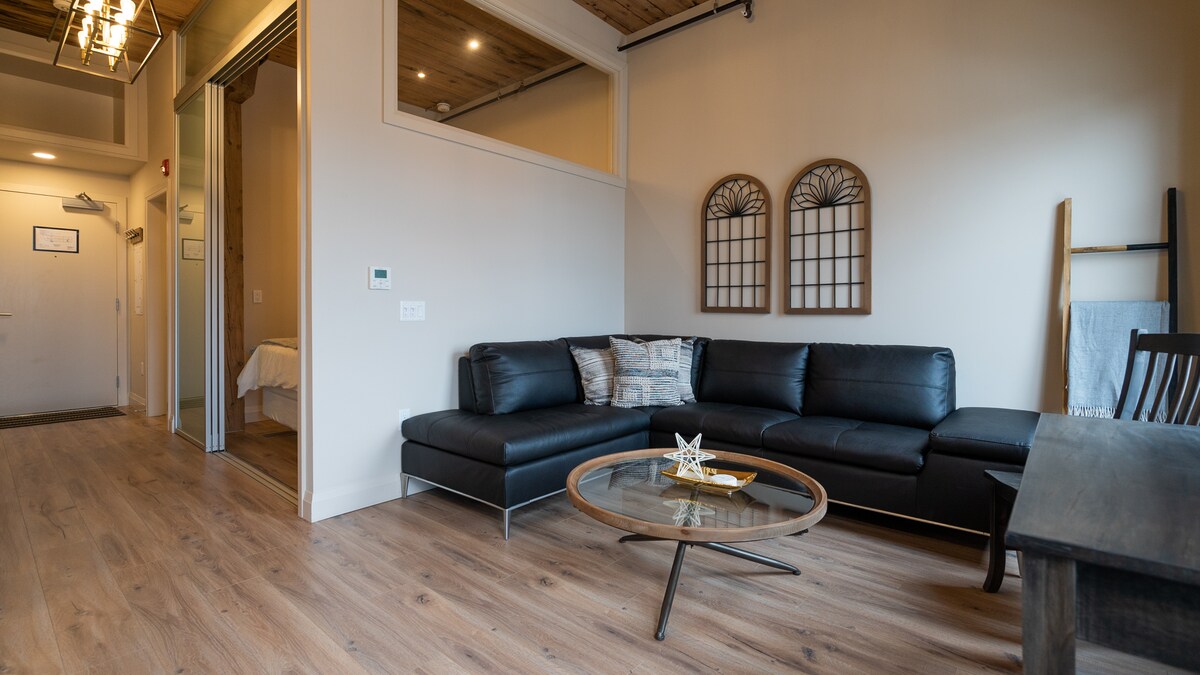 Art-Deco Studio Loft: A Blend of Historic Charm & Modern Luxury. Enjoy the unique mix of classic brick facades and modern design in this studio loft, featuring two Queen-sized beds, WiFi , and ensuite laundry. Just a stroll away from Stratford’s downtown cafes and shops, and a short walk to the tranquil Lake Victoria. Perfect for those seeking a luxurious , comfortable stay near the Stratford Festival! Need something slightly smaller? Check out our sister suite Mister’s Loft