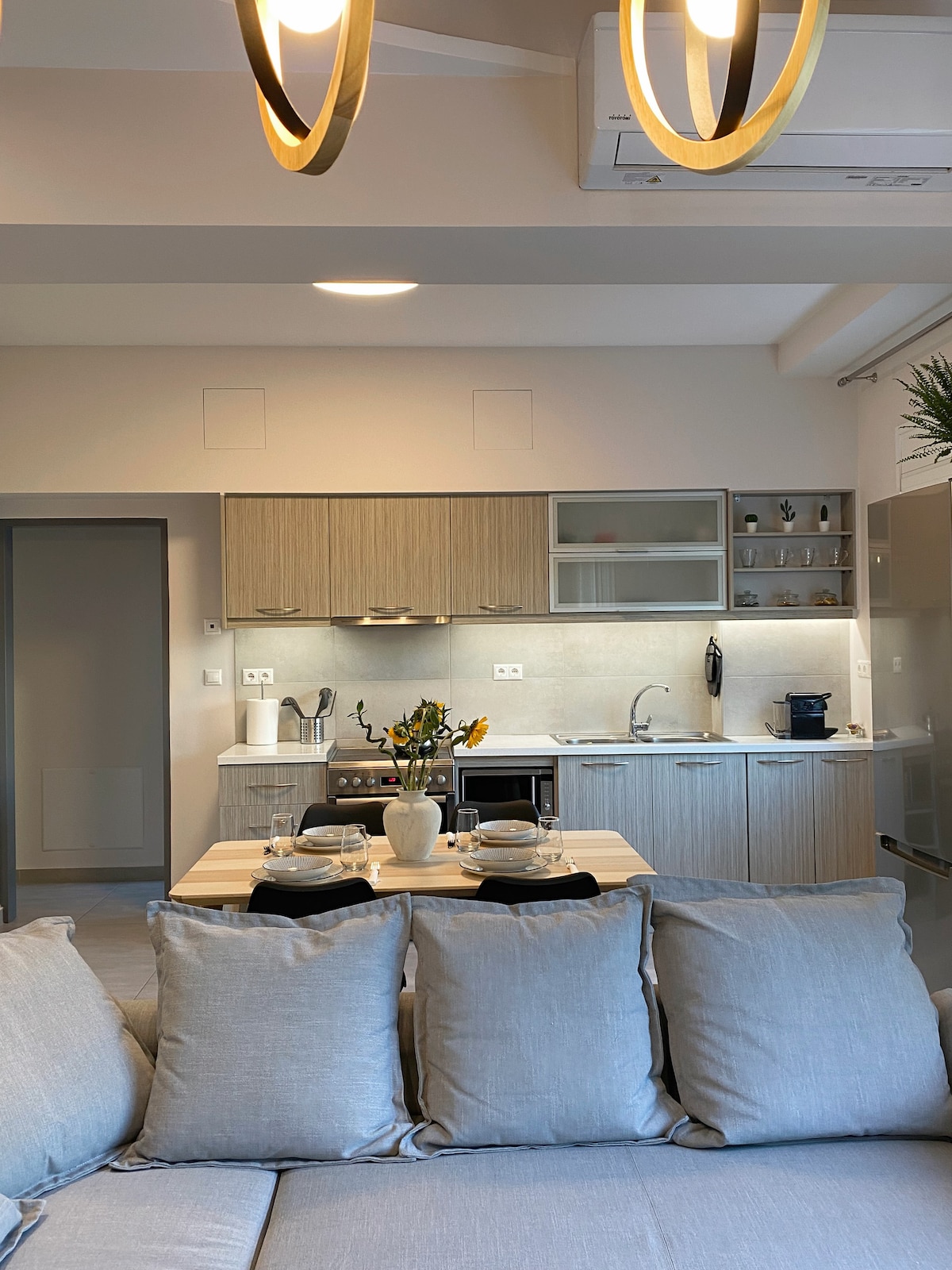 A stylish apartment in Athens, owned and designed by Neta Dror, a designer and artist who has infused the space with her personal vision. This apartment has a unique space that combines old and new elements. The apartment has a large living room with a comfortable sofa, a dining table and a kitchen with all the amenities. The bedroom has a comfortable double bed and a hidden bathroom that surprises and delights. This apartment is more than just a place to sleep, it is a place to experience.