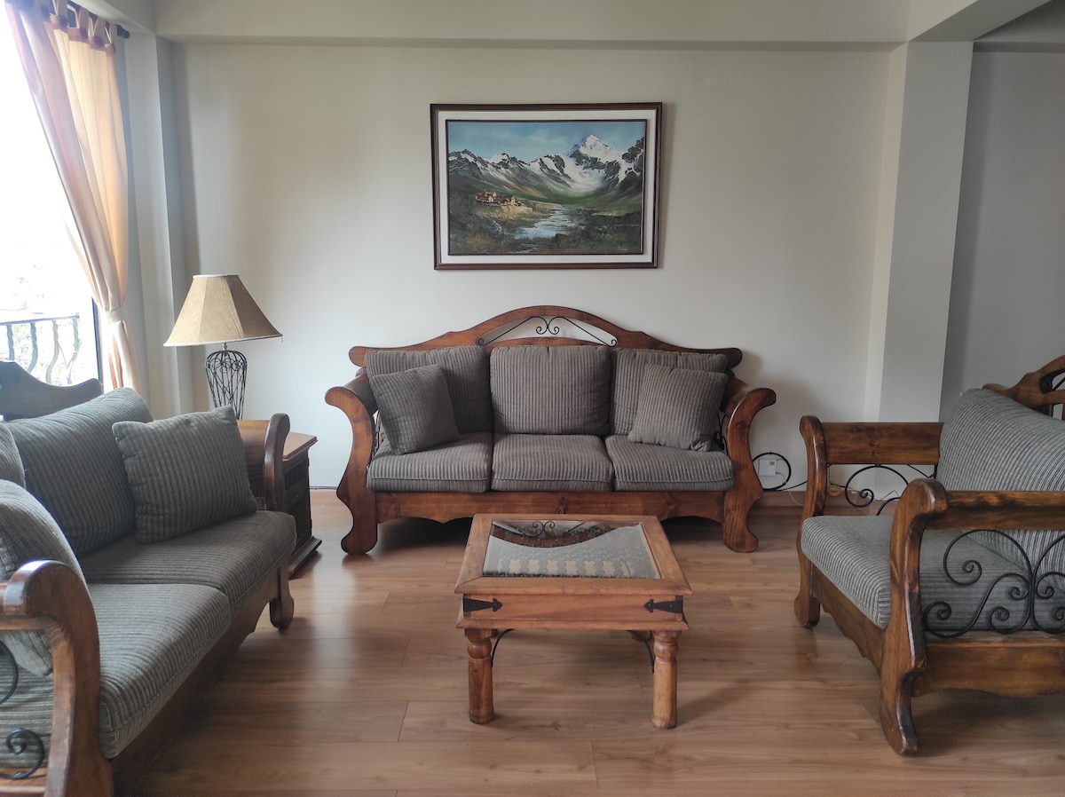 The parking lot is NOT SUITABLE FOR LARGE VEHICLES (4.3 m long X 2.80 m wide) Forget your worries in this spacious and serene space, 8 blocks from the main square. The apartment is new, comfortable, economical and very clean. In a safe area and very easy to access. It has its own parking for a small vehicle. Fully-equipped kitchen, TV, WiFi and elevator.