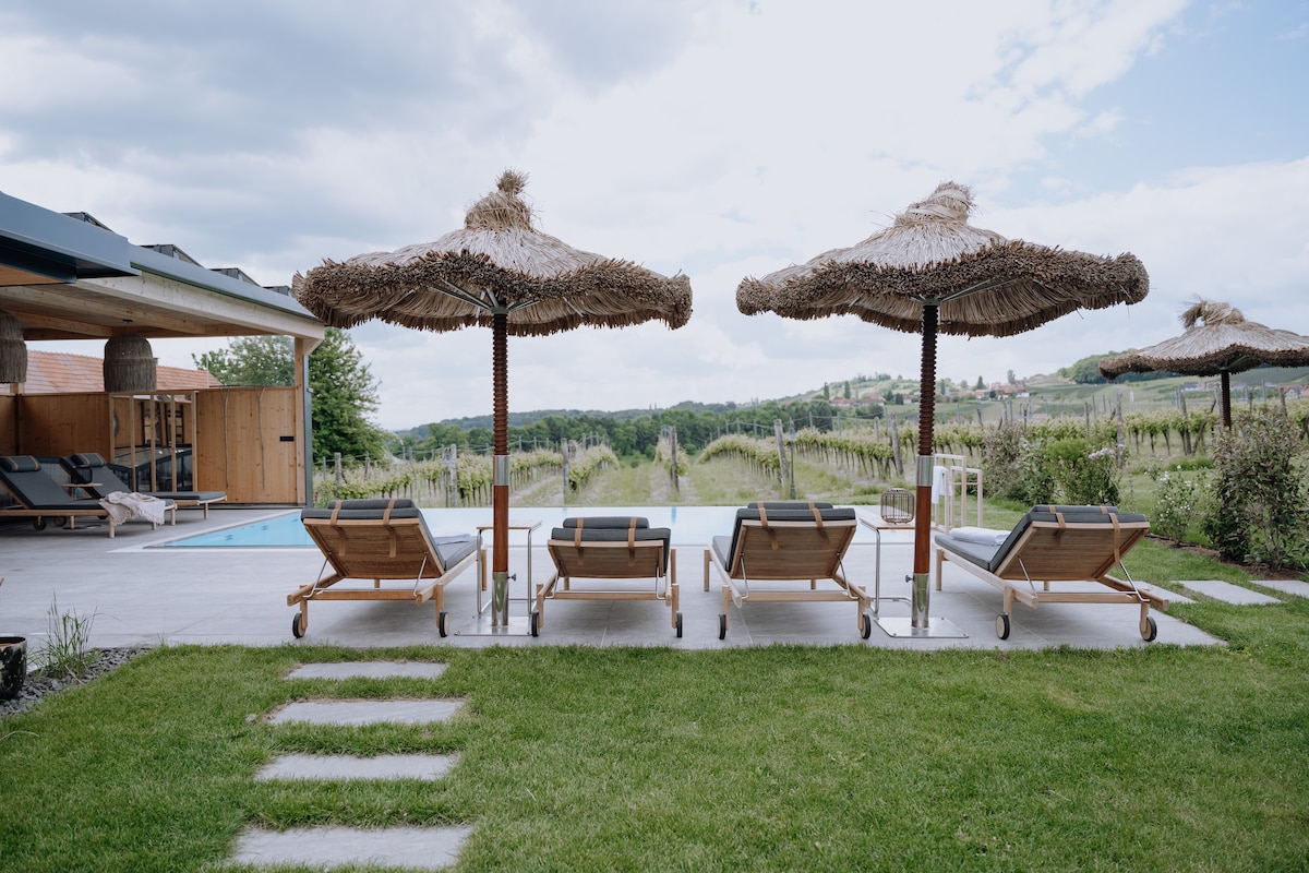 **Apartment mit direktem Poolzugang** **Direkt an der Südsteirischen Weinstraße** **Wanderwege und Biketrails direkt vor der Haustür** **Infinity Pool, Sauna und Fitness** Das Gebäude wurde 2022 neu errichtet und ist ein architektonisches Highlight mitten in den Weinbergen. Das Apartment selbst ist komplett neu, voll ausgestattet und verfügt über alles, was du brauchst, um dich schnell zuhause zu fühlen. Das Apartment ist hell und ruhig gelegen, deine Terrasse führt dich direkt in die Natur.