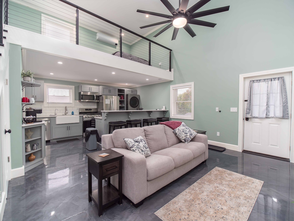 Enjoy a piece of history when you stay in our former trolley station that has been converted into an industrial style loft. Just outside the city limits in a country setting but close to the hospital, local bars/restaurants and the comedy center. The lower portion of the building features a quaint gift shop and across the street is a farm stand with locally grown food.