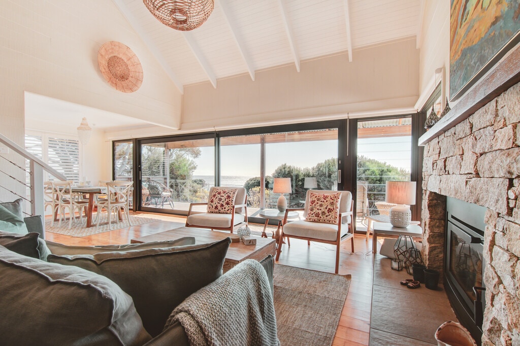 If a place was an exhale, this would be it. The space was created with slow & sustainable living in mind, giving you space to breathe & time to truly switch off. The Lookout sits in an open paddock, with 360 views of farmland. Take it all in from your bathtub or through huge windows that frame views stretching right over the wilds of Wildwood. Inside is a cocooning embrace; it’s the dreamiest sanctuary for two. Unfortunately our property is not set up to host newborns, infants or toddlers.
