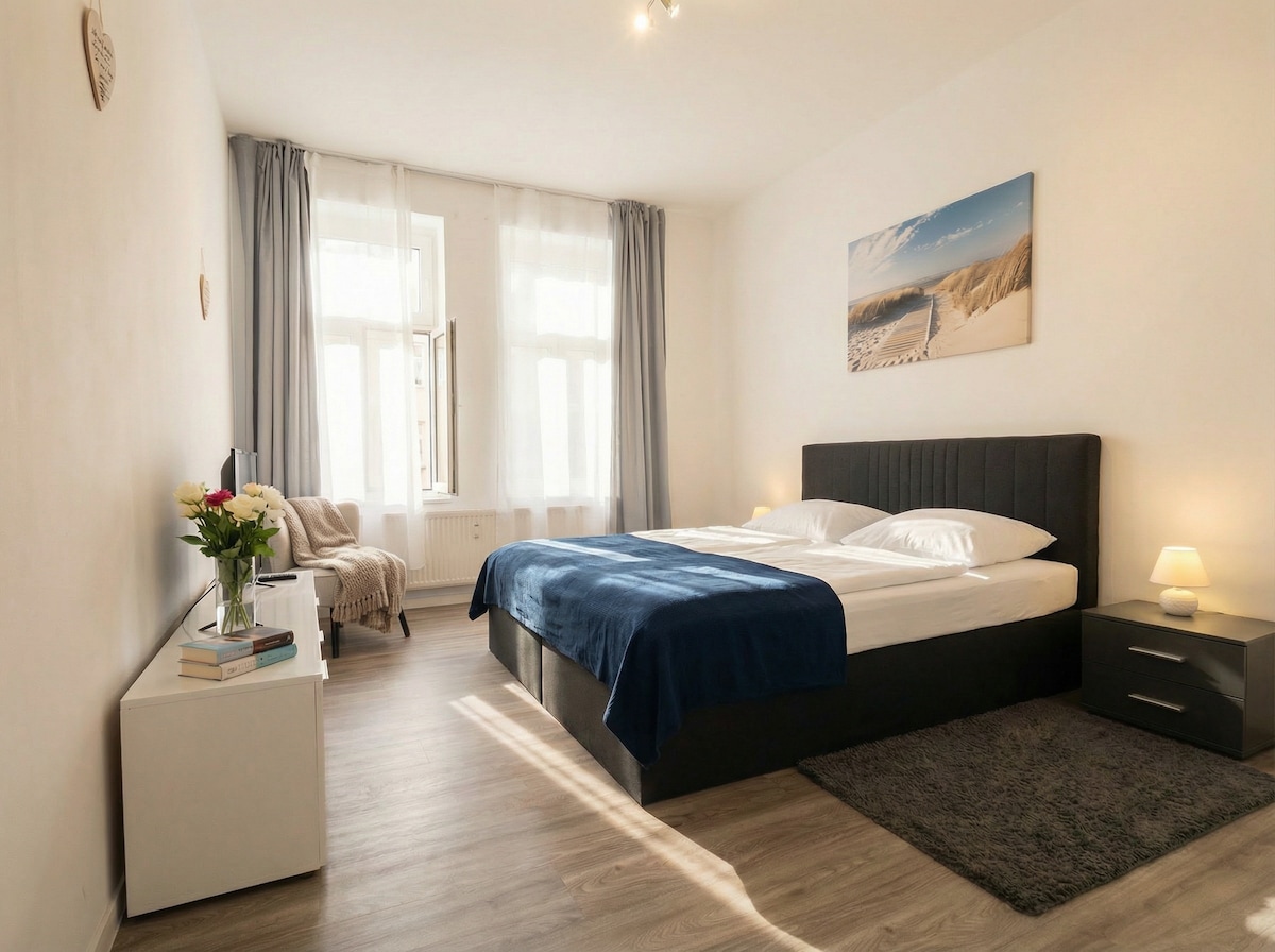 Our spacious apartment (130 m²) offers everything you need for a relaxing stay in Gotha. You will stay 300 meters from the center and yet quietly on the edge of the palace park. Pets are welcome, but cost extra. Please write a request before booking