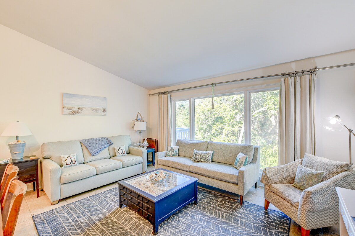 Escape to Seabrook and relax at a private South Carolina coastal island with access to exclusive beaches, pools and amenities. This thoughtfully designed and decorated 1-bedroom, 1-bathroom villa has everything needed to make your island experience comfortable and memorable. The villa is on the end of the upper floor which provides a quiet retreat and its porch overlooks the Racquet Club. Conveniently located within the security gates of the 7-square mile island, the villa is ideal for Seabrook!