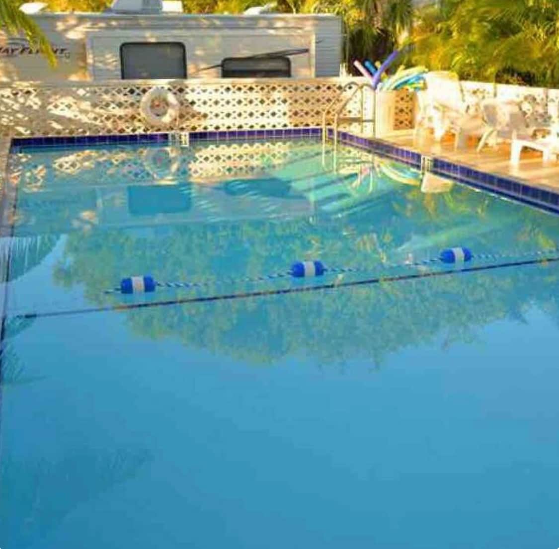 Tropical retreat in the heart of Florida Keys. Relax in this fully furnished private & clean RV with parking just 30 miles from Key West. Enjoy breezy indoor/outdoor living with a fold-down patio, 2 TVs, full kitchen, bathroom, pantry. Outside seating with awning. Nestled in a local RV park w/ pool, fish station, and coin laundry. Vacation here & swim in the ocean —Next to Pine Channel in Big Pine Key and 10 miles to Bahai Honda State Park. Walk to groceries, Walgreens, restaurants.