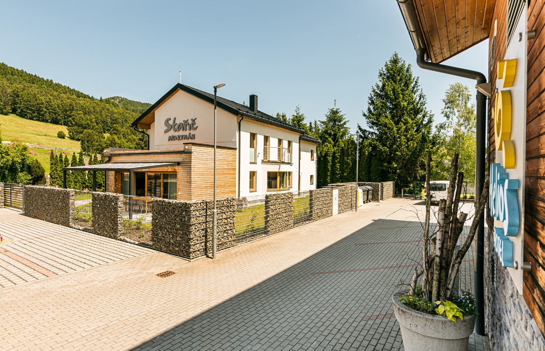 Nabízíme k pronájmu nový designový apartmán s výhledem na sjezdovku. Apartmán je umístěný 200 m od nástupu na lanovku, která Vás vyveze na horu Slamník, kde je možné navštívit Stezku v oblacích a nejdelší visutý most na světe - Sky Bridge. Nachází se ve čtvrtém patře, v přízemí bytového domu se nachází lyžárna, která je vybavena vysoušečem lyžařských bot. V prvním podzemním patře je k apartmánu garážové stání. V dosahu apartmánu jsou dostupné restaurace a wellness v hotelu Vista.