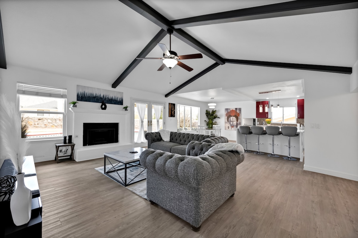 Your family will be close to everything at this centrally-located home that was fully remodeled in 2023. The home has 3 bedrooms, a dedicated office space with sofa bed to sleep 1, a living area with fireplace that opens up into the kitchen and dinning/breakfast area and a backyard to grill, relax or swim. Enjoy the excellent views of the mountain while having breakfast or relaxing in the in-ground pool or hot tub. The pool heater broke and it’ll take a week to be replaced.