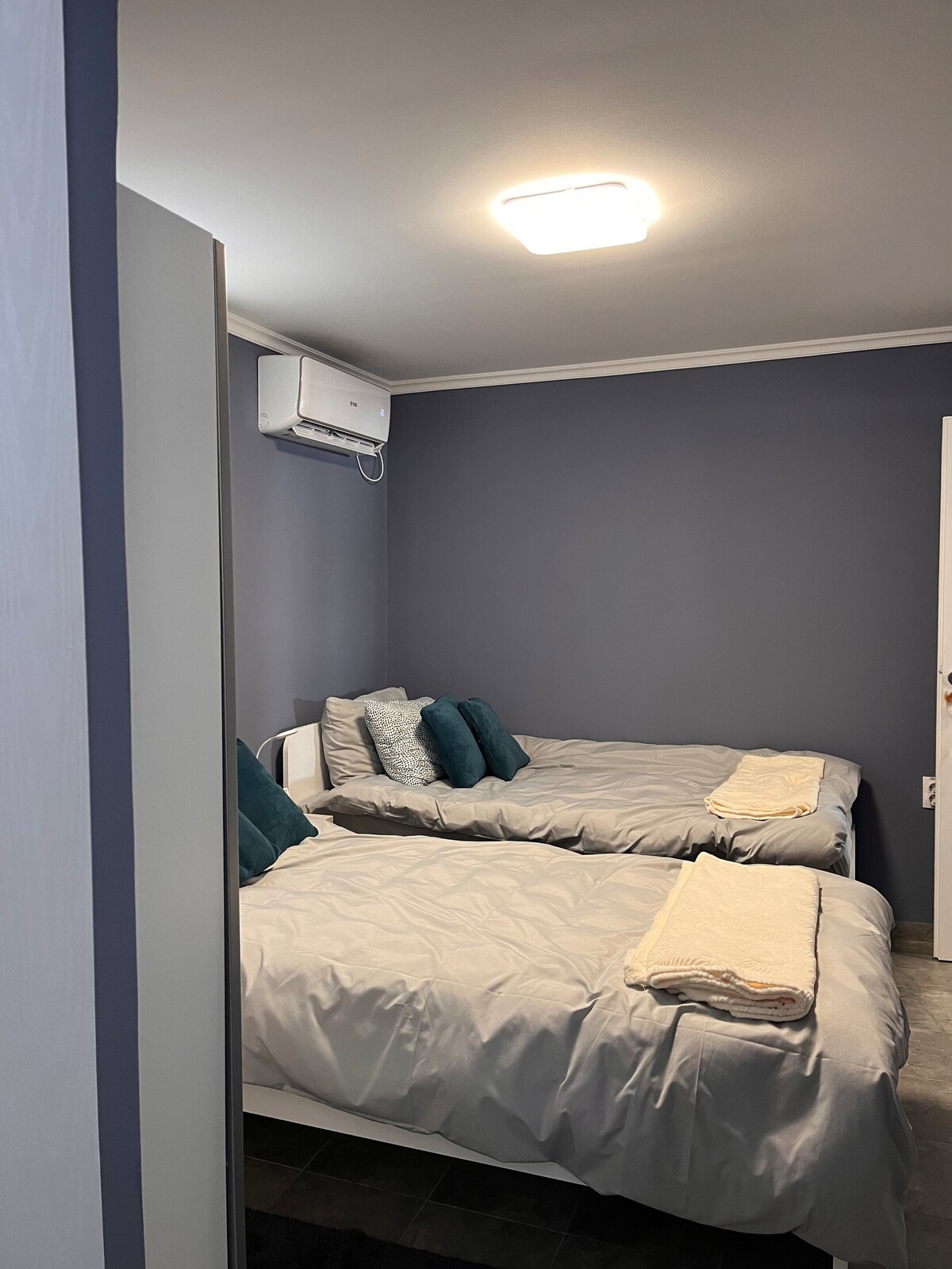 Apartment with two bedrooms , one living room and full equipped kitchen , big dinner table and one bathroom with shower. This apartment offers two flat-screen tv-s with cable channels, free private parking and free WIFI,air conditioning,a fridge and a microwave,each unit includes bed sheets, pillows,blankets and towels. The apartment is offering a garden with garden view. The beach of the palić lake is two hundred meters from the apartment ,and the new water park is only 5 minute walk.