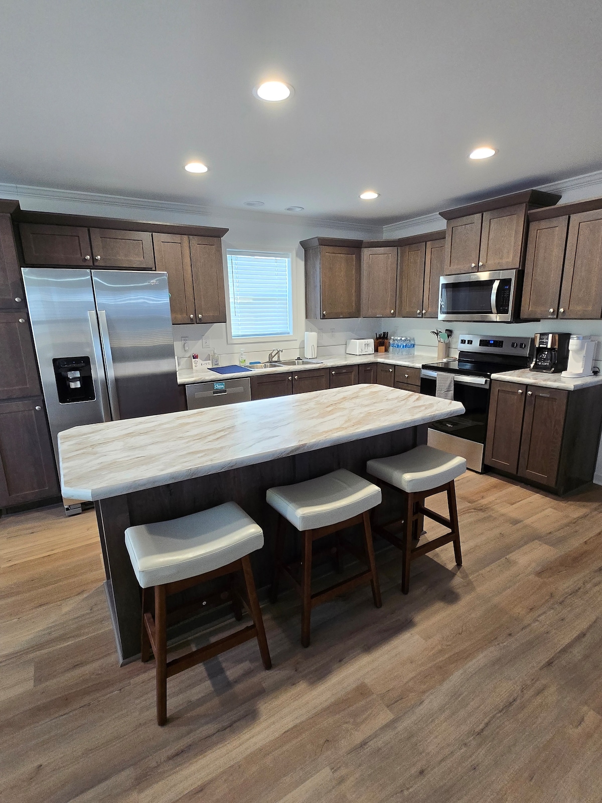 A peaceful, clean, and inviting coastal home-perfect for unwinding after a sandy beach day or beginning an easy stroll through Surf City’s charming local boutiques. The kitchen is ideal for shared meals, and the spacious backyard is designed for both relaxation and play. Enjoy evenings on the patio with the grill and fire pit, while the swing and lawn games keep everyone entertained beyond the beach.