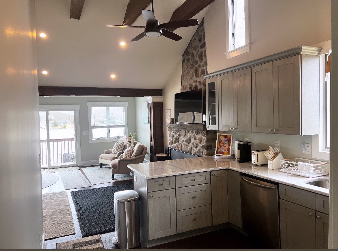 The cottage is waterfront and is a PERFECT spot for a romantic couple's getaway! honeymoon/celebrations Designed with that in mind, a kitchen w/ espresso machine, living room with wood burning fire and a romantic luxurious suite with a king bed & cozy ambiance complete w/ water views and a stunning bathroom that features a double vanity, a large soaking tub, a tile shower with a soothing 3 function rain shower is complete with luxury linens, cozy robes & soft towels...