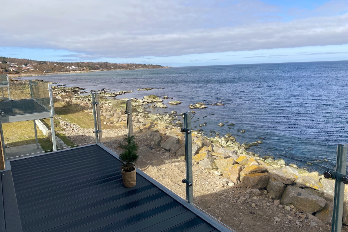 Enjoy a holiday in beautiful, idyllic, cozy surroundings in the newly built red wooden cottage "Søglimt". The name of the house is a little misleading, because from the large kitchen living room there is not only a glimpse of the sea, but rather 180 degrees full panoramic view of the Baltic Sea. Here you can sit with a cool glass of white wine or a delicious cup of coffee and keep an eye on the children swimming from the rocks, or just enjoy the sound and sight of the waves and study the ships that slowly pass by.