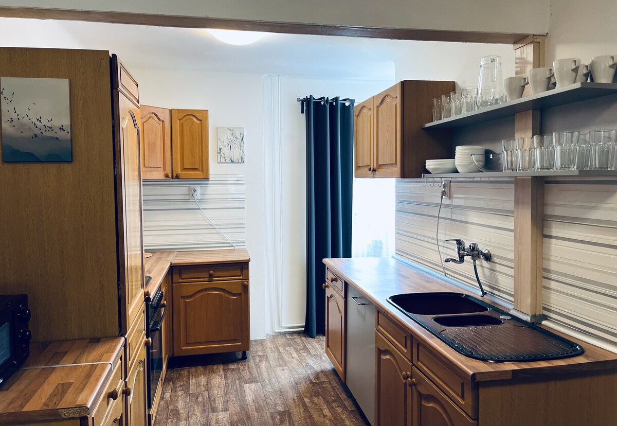 "Welcome to our cozy apartment in the heart of Vimperk! With breathtaking views of historic sites and modern amenities, our place is perfect for couples or small groups looking to explore the beauty of this city. Enjoy your own kitchen and spacious living room for relaxing after a long day of exploring. With a great location, you're just steps away from local restaurants, cafes, and landmarks. We look forward to your visit!"