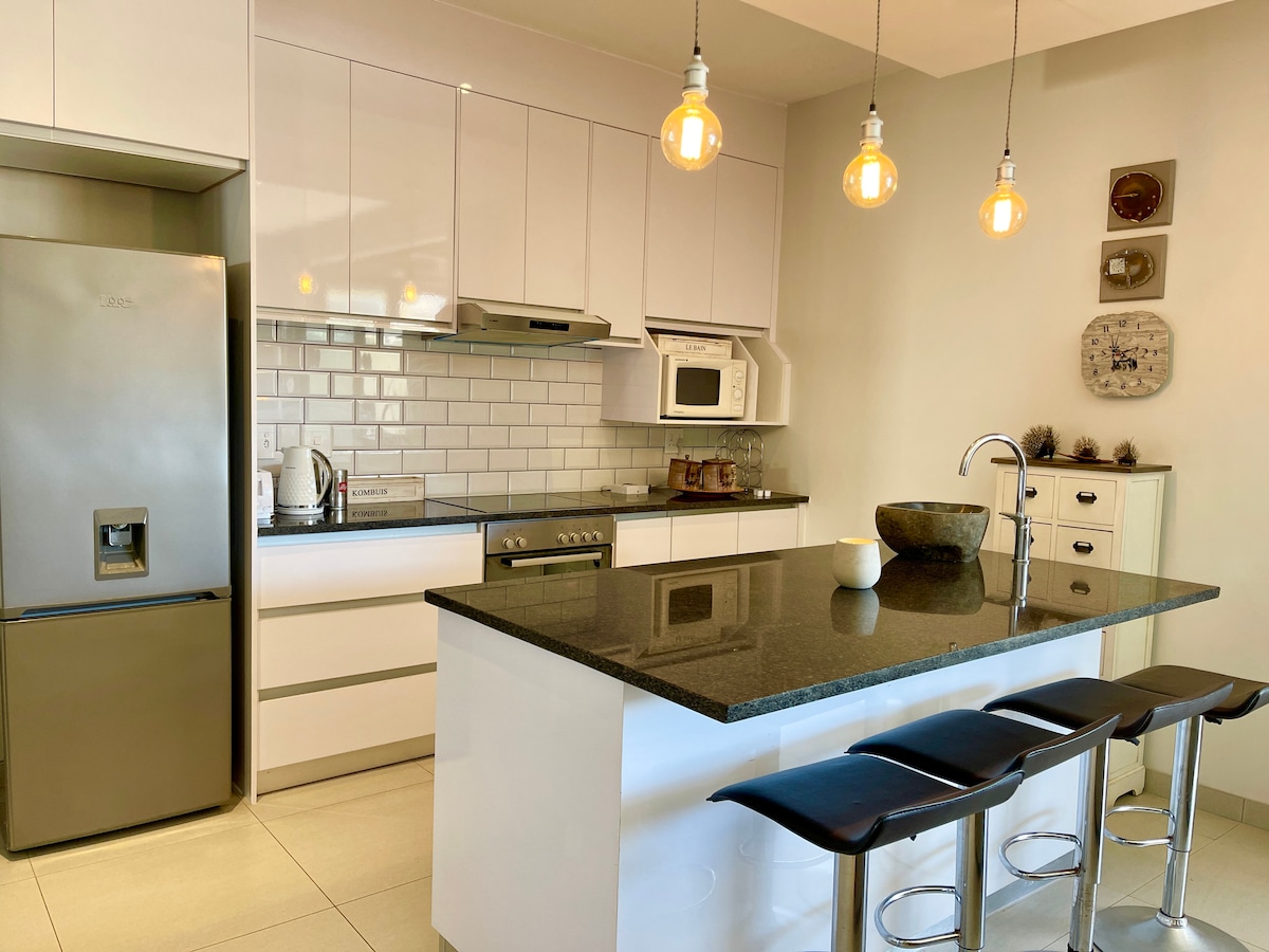 Enjoy stylish living just 3 minutes from the beach! Your unit comes with a double garage. Upstairs, you'll find a spacious living area with a fully equipped open-plan kitchen and a sunny terrace with a built-in braai – perfect for relaxed evenings. The apartment features two bedrooms, two bathrooms, plus an extra guest toilet. We've added thoughtful touches like premium coffee from a local roastery, exclusive soaps, and a monitor for mobile working – making your stay extra special.