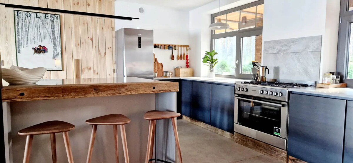 A cozy, comfortable house in the middle of the forest on a beautiful and clean lake. Large, fenced plot (about 1500 m), beautiful terrace, professional barbecue, fireplace, incredibly cozy living room, which you will not want to leave! Silence, super air quality, peace... The house has 3 bedrooms: one master bedroom, the other with a large mattress, and the third has 3 single beds. In the living room there are also 2 large, fold-out, very comfortable sofas. The kitchen is large and equipped with everything you need.