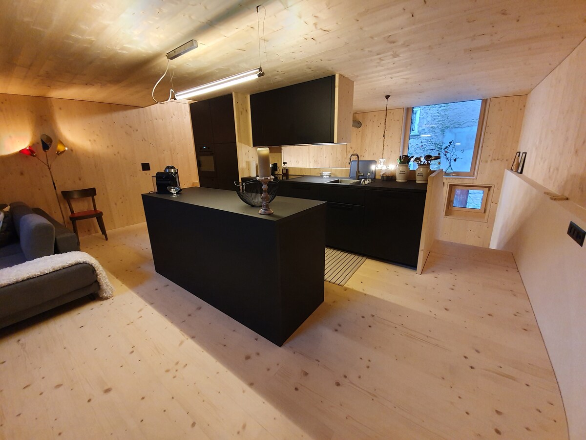 Barn1686 is located in the quiet village of Borgonovo, surrounded by stunning mountains. Originally built in 1686, the barn was fully renovated in 2015 and offers 90 m² of modern amenities: electric heating, a modern kitchen, two open bedrooms, two bathrooms, and a cozy fireplace. Need more space? Right next door is the second half of the semi-detached house – Ciäsa7406! Perfect for families or friends traveling together who still value their privacy.