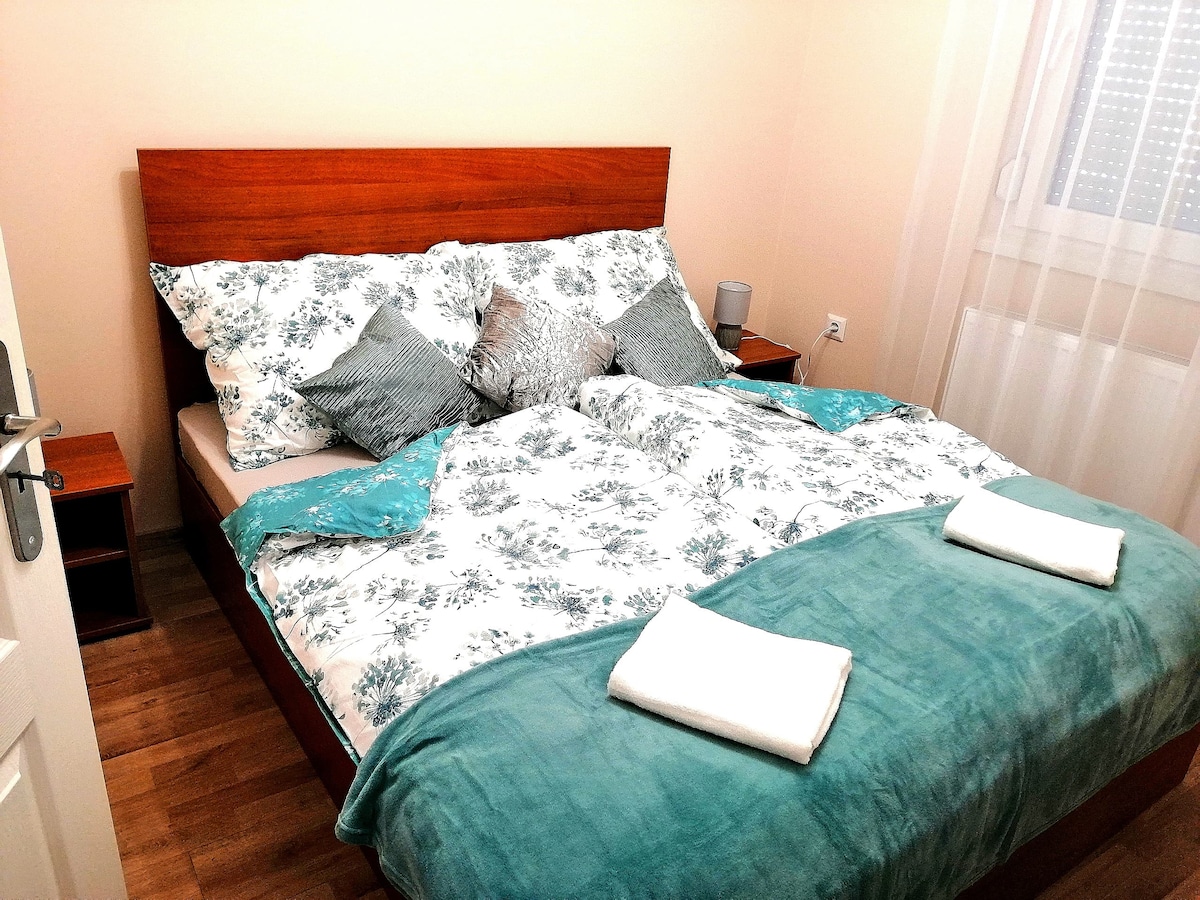 A lakást meleg szívvel ajánljuk azoknak, akik szeretnének nyugodt környezetben, de mégis a belvároshoz közel lakni. Ingyenes parkolási lehetőséggel, közeli tömegközlekedéssel, gyalog 10 perces sétára a központtól található a 2 szobás lakás. Szeretettel várjuk kisgyermekesek érkezését is, ebben az esetben lehetőség van babaágy bekészítésére. A lakást igyekeztünk modern módon berendezni, pakolható szekrényekkel, kényelmes matracokkal és pehely ágyneműkkel, a konyha is teljesen felszerelt.