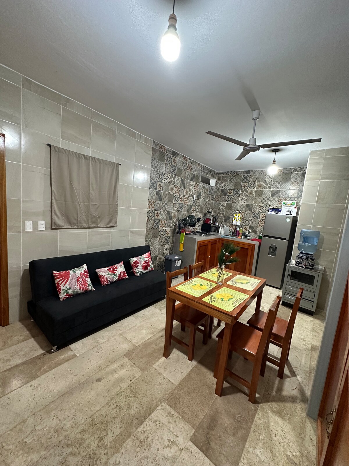 Enjoy the comfort of this quiet and independent accommodation, opposite Interplaza Xela. You can rest or work in its environments alone or with more people, it has an equipped kitchenette, dining room for 4 people, living room (sofa bed) with entertainment (43" TV, Wifi, Netflix and board games) and bedroom with a king size bed, desk, closet and a comfortable bathroom with hot water. Free secure parking for up to 4 vehicles.