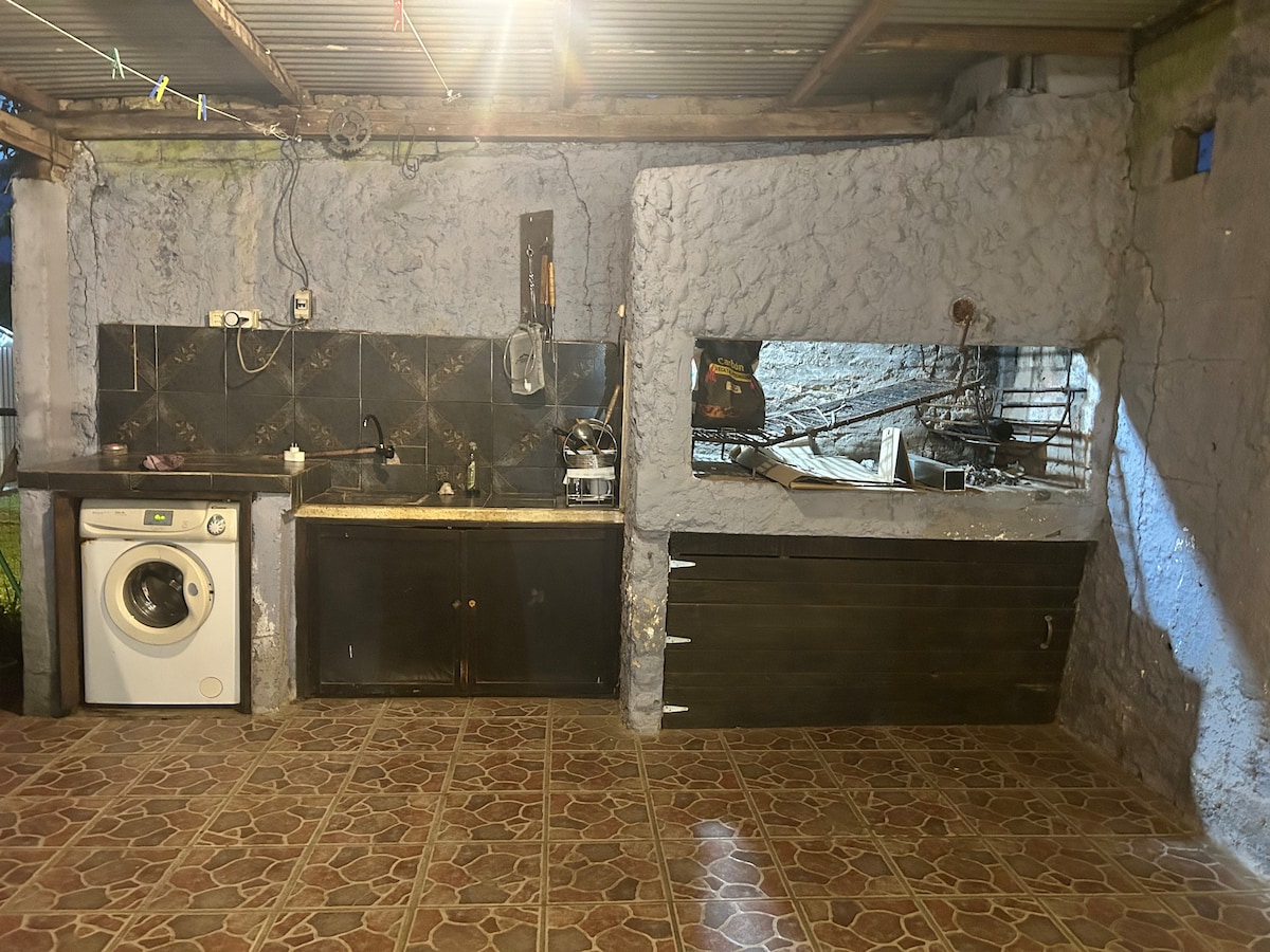 Lugar muy privado, cercado todo de muros. Relájate con la familia o amigos en este tranquilo lugar. En el exterior cuenta de espacios verdes, un parrillero en el fondo, y techo para el auto. Hay espacio para dos autos en el predio.. La casa está completamente equipada tanto cocina como dormitorios con ropa de cama y toallas si lo requieren. A minutos del centro de la ciudad.