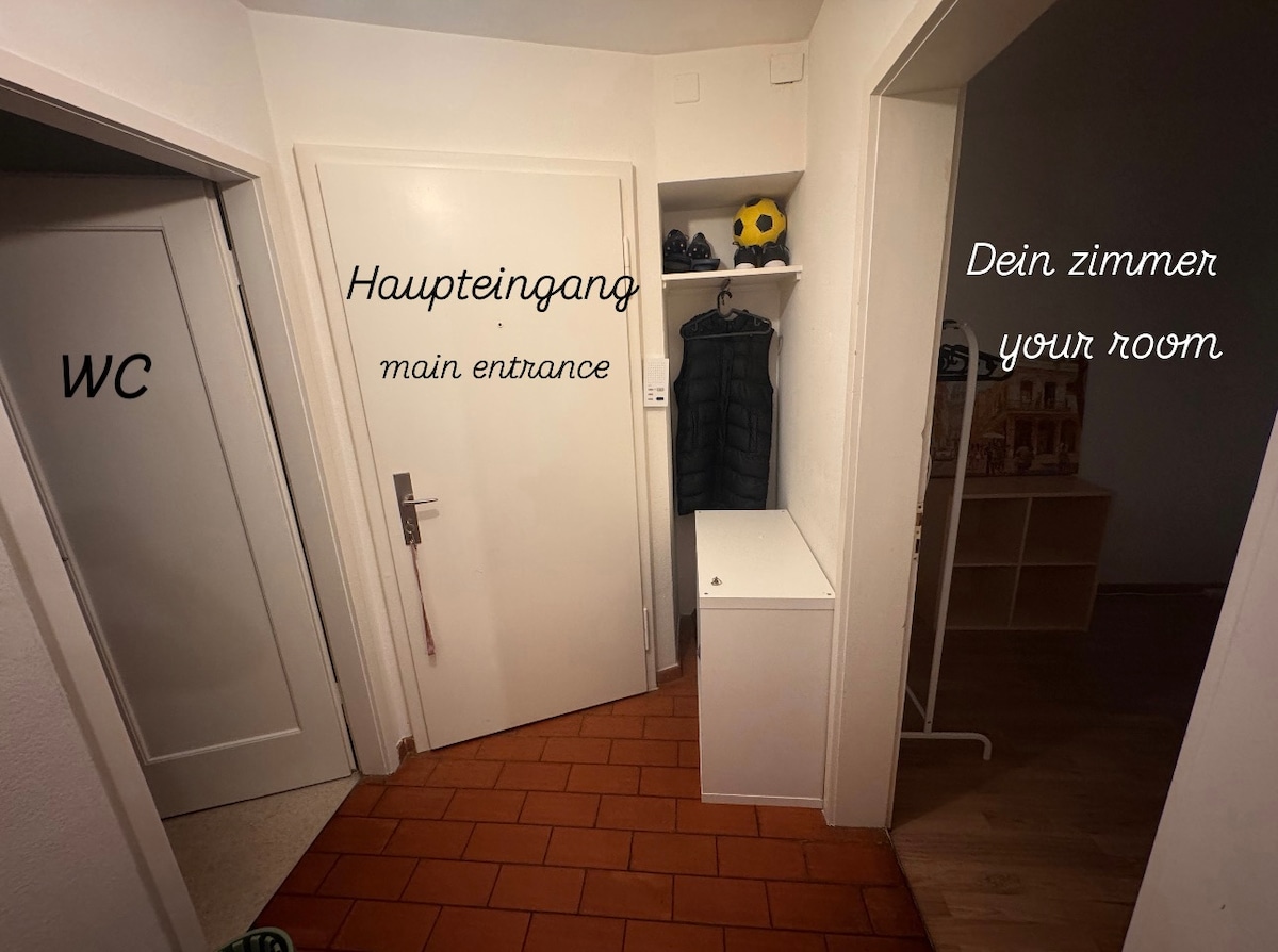 A beautiful 2.5-room apartment near Zurich Airport. The flat offers: - Super equipped kitchen with oven - Plenty of cooking essentials - own washing machine - a wet room (bathroom/toilet) - TV - High-speed WIFI - etc. The spacious balcony is particularly noteworthy. Shopping furniture & train station are within 5 minutes walking distance.