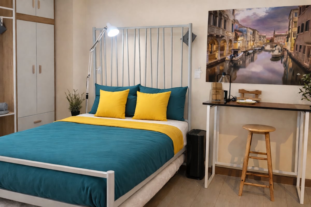 Escape to a high-floor suite with breathtaking BGC skyline views, cinematic JBL surround sound, and a 55-inch Full 4K Smart TV with LED mood lighting—your ultimate movie night haven. Take in the scenery with high-grade binoculars, then sink into the ultra-comfy Emma® Cloud-Bed for a perfect night’s sleep. Far from city noise yet close to everything, enjoy fast WiFi, Netflix, Disney+ and more! Truly a fully equipped space for a seamless, unforgettable staycation experience with Cinema 27!